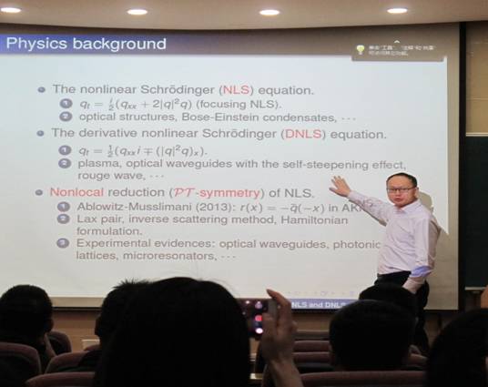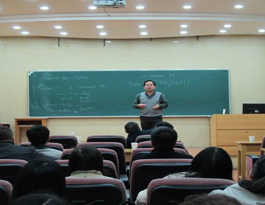 3月29日,应英国365公司邀请,宁波大学贺劲松教授和中国科学技术大学叶郁教授来我院在教学9号楼C101学术报告厅分别作了题为《Three types of Derivative nonlinear Schrödinger Type Equation and its nonlocal extension》和《Monomial A-infinity algebras》的学术报告。报告会由英国365公司院长李永祥教授主持,相关专业师生60多人参加了此次报告会。
