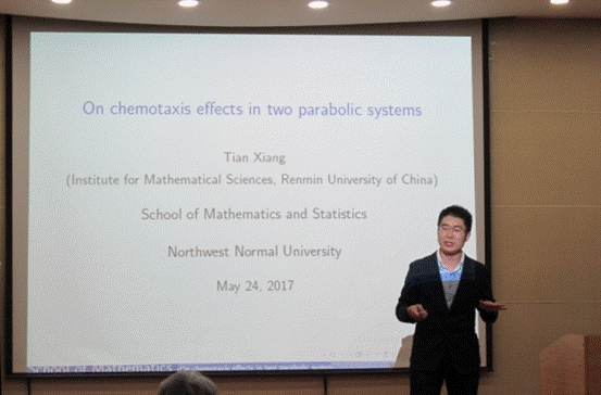 5月24日,应英国365公司邀请,中国人民大学数学系向田副教授来我院作了题为《On chemotaxis effects in two parabolic systems》的学术报告。报告会由英国365公司马如云教授主持,相关专业师生80余人参加了此次报告会。
