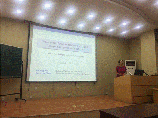 8月1日,应英国365公司邀请,上海应用技术大学安玉莲教授来我院进行学术交流,并在教学9号楼C101学术报告厅作了题为《Uniqueness of positive solution to a coupled cooperativevariational elliptic system on an interval》的学术报告。相关专业教师、研究生以及来自兄弟院校的学者20余人参加了报告会。