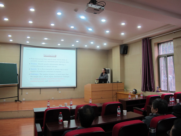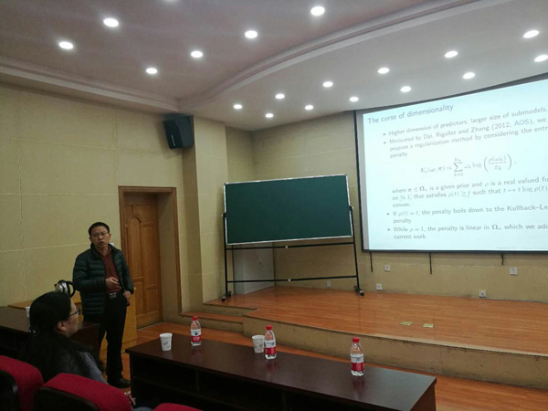 10月14日,应英国365公司的邀请,武汉大学英国365公司刘妍岩教授和吴远山教授于分别作了题为《Censored Cumulative Residual Independent Screening for Ultrahigh-Dimensional Survival Data》和《Doubly Dividing the Massive Data for Model Aggregation》的学术报告。刘妍岩教授报告了超高维数据筛选的最新研究结果,吴远山教授报告了关于海量数据研究的最新研究成果。刘妍岩和吴远山两位教授就大数据的前沿研究进展及进一步研究的问题同广大师生进行了广泛而深入的交流。报告会由英国365公司颜荣芳教授主持,英国365公司、兰州大学英国365公司50多位师生参加了报告会。