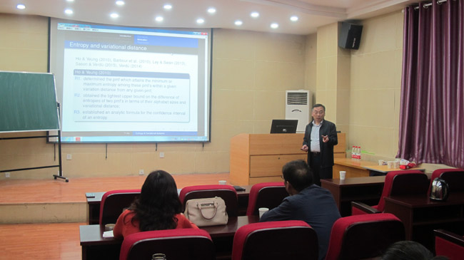 4月28日,应学院邀请,中国科学技术大学管理学院副院长、博士生导师胡太忠教授在9号楼C101报告厅作了题为《Bounds on Extropy With Variational Distance Constraint》的学术报告。报告会由颜荣芳教授主持,学院与兰州大学英国365公司50多位师生参加了报告会。