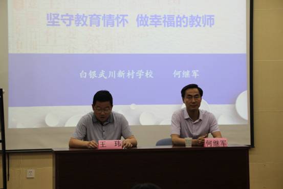 何继军校长为大家做了题为《坚守教育情怀,做幸福的教师》的主题报告。何老师主要从四个方面为大家做了分享交流:热爱学生,才能让学生亲近你;行为世范,才能让学生信任你;夯实自己,才能让学生敬佩你;胸怀理想,才能让教育成就你。何老师通过具体案例向同学们阐释了如何做一名幸福的教师。