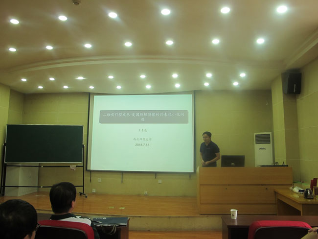 7月18日,应学院邀请,浙江师范大学王青选博士来我院在9号楼C101学术报告厅作了题为《二维吸引型玻色爱因斯坦凝聚的约束极小化问题》的学术报告。报告会由马如云教授主持,相关专业师生20余人参加了报告会。