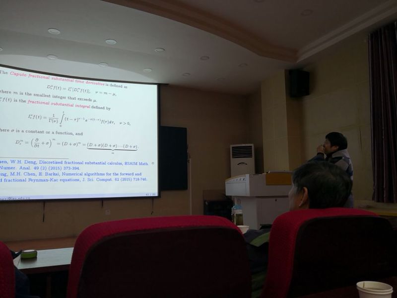 王业娟教授讲解了在多值随机动力系统中均方随机吸引子的存在性结果,并且将该抽象结果应用于具有无限时滞的晶格动力系统和随机反应扩散方程。最后,介绍了2维到4维空间中Navier-Stokes方程的一些研究结果。