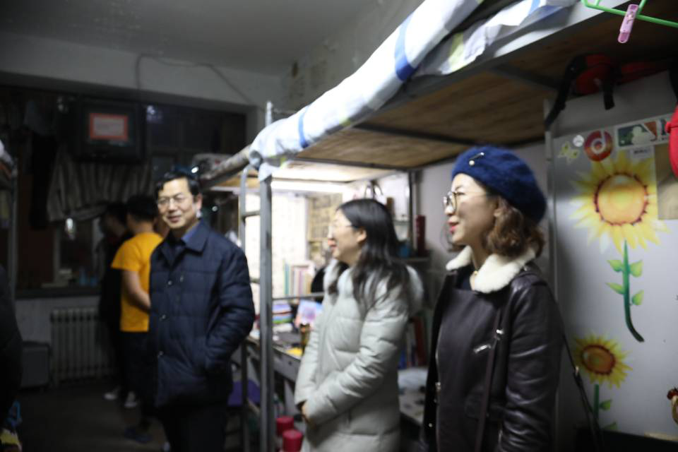 2月24日晚,学院领导、班主任、辅导员及学生干部分四组深入学生宿舍看望了全体本科生、研究生。