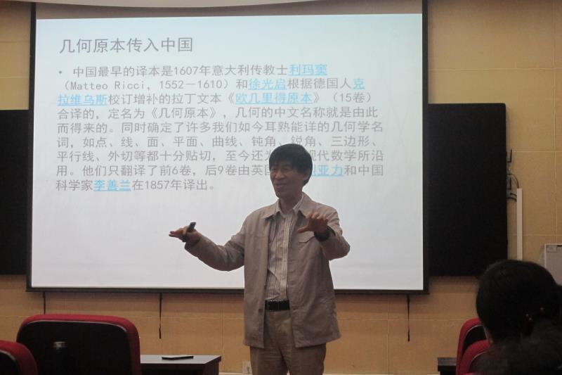 5月17日,应学院邀请,南京大学数学系秦厚荣教授来我院进行学术交流,并在9号楼C101学术报告厅作了题为 《从几何原本到素数定理》的学术报告。报告会由刘仲奎教授主持,学院部分教师及研究生50余人参加了报告会。