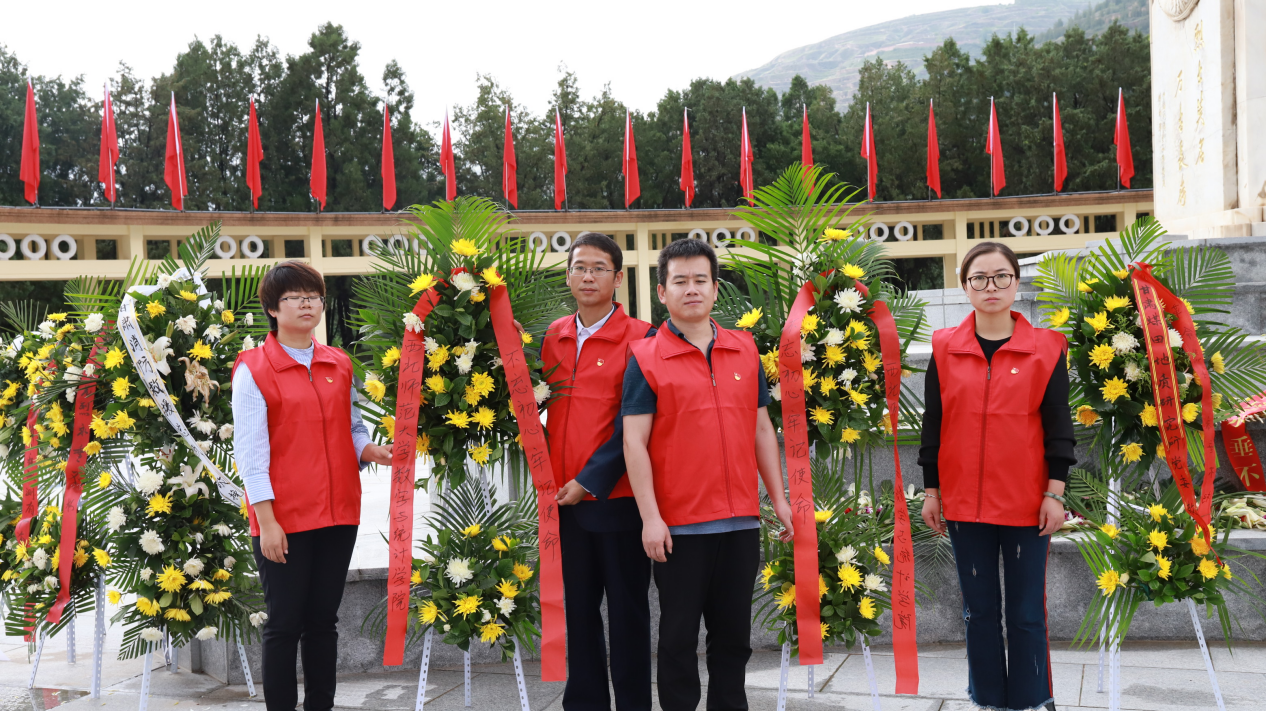 站在这片洒满革命烈士鲜血的土地上,全体党员怀着无比崇敬和悲痛的心情,向革命烈士默哀。默哀毕,党员代表缓步前行,向革命烈士敬献花篮,全体党员依次上前向革命烈士献花,认真瞻仰纪念碑并鞠躬致敬,伟大的革命先烈千秋不衰,万古不朽。最后,在鲜亮的横幅上写下了真切寄语并合影留念。