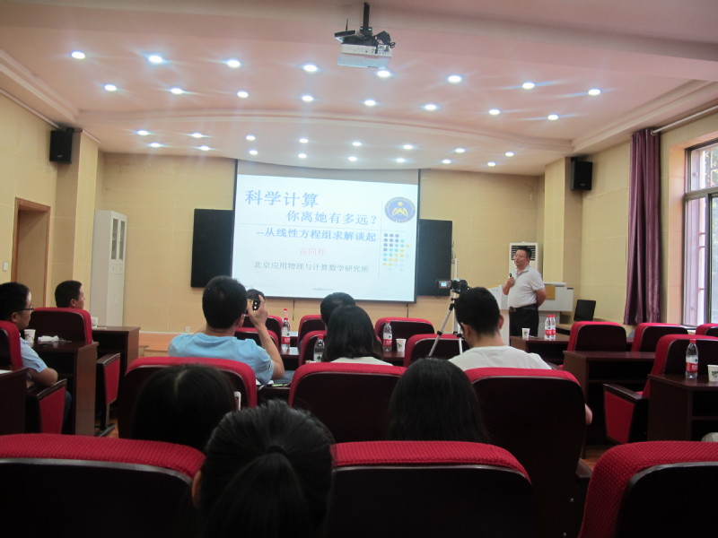 7月22日,应学院邀请,北京应用物理与计算数学研究所谷同祥研究员来我院进行学术交流,并在教学9号楼C101学术报告厅作了题为《科学计算,你离她有多远?--从线性方程组求解谈起》的学术报告。报告会由缪树鑫副教授主持,相关专业师生40余人参加了此次报告会。