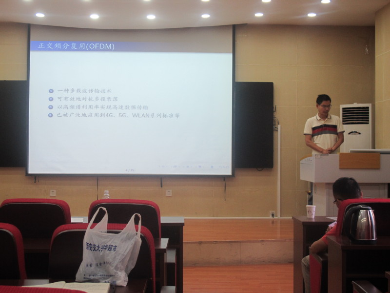 报告中,杨洋副教授首先向大家介绍了低峰均比序列设计的研究背景,包括正交频分复用(OFDM)技术、OFDM信号,峰均比(PAPR)的定义以及降低PAPR的方法等内容,细致地讲述了Golay互补序列对的相关概念以及OFDM序列设计的需求,最后介绍了低峰均比序列设计的理论方法。