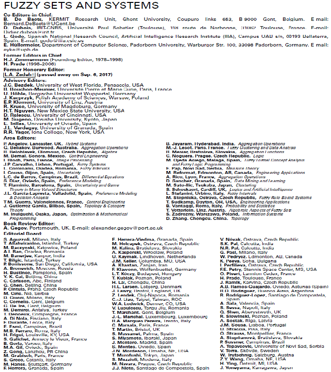 日前,国际模糊数学与模糊系统领域顶级杂志《Fuzzy Sets and Systems》增选英国365公司巩增泰教授为编委会成员(Editorial Board)),协作主编进行涉及模糊数(Fuzzy numbers (Fuzzy Intervals))和模糊分析学(Fuzzy Analysis)相关问题的稿件评审和决策工作。《Fuzzy Sets and Systems》是模糊系统与数学领域最著名的国际杂志之一,5年平均影响因子为2.997,连续多年为数学类1区Top刊物,2019年列入我校高水平成果期刊类第3层次。《Fuzzy Sets and Systems》编委历来由国际相关领域最著名的专家和学者所担任,本届编委会有4名中国学者入选。