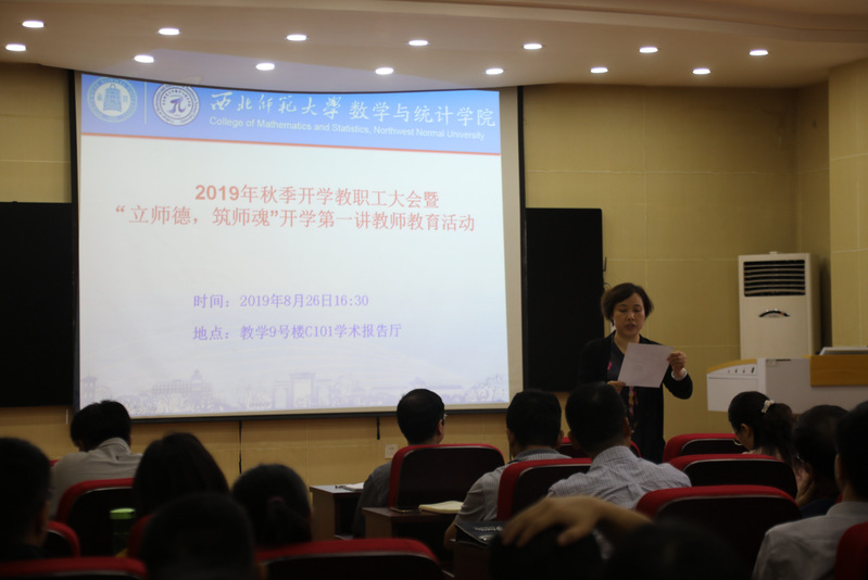 8月26日下午,学院党委书记常正霞在C101报告厅主持召开全院秋季学期开学教职工大会,学院全体教职工参加会议。