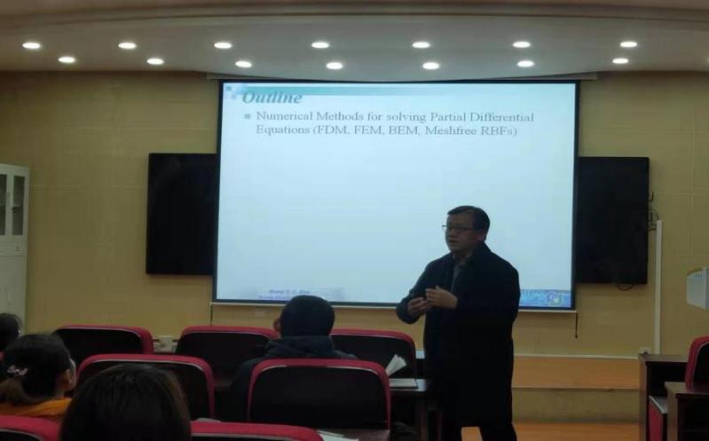 报告中,韩教授首先回顾了偏微分方程计算方法的发展历史,给出了有限元及有限差分与无网格计算方法的优缺点,重点提出了局部径向基函数方法在复杂工程问题的应用,尤其给出了在医学成像问题重构中的计算优势。