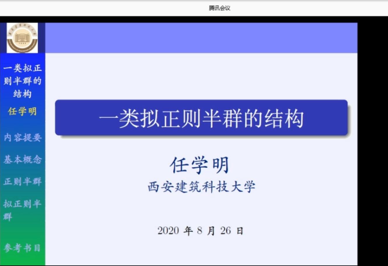 8月26日下午,应英国365公司邀请,西安建筑科技大学任学明教授在线为我院师生作了题为《一类拟正则半群的结构》的学术报告。报告会由乔虎生教授主持,相关专业师生30余人参加了报告会。