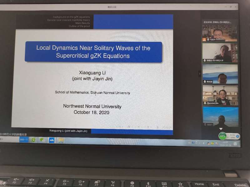 10月18日,应学院邀请,四川师范大学李晓光教授在线为我院师生作了题为《Local Dynamics Near Solitary Waves of the Supercritical generalized Zakharov-Kuznetsov (gZK) Equation》的学术报告。报告会由冯斌华副教授主持,相关专业师生50余人参加了此次报告会。