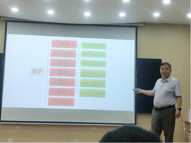 报告中,刘三阳教授详细介绍了教学中从理念到方法,从认识到实践,探讨教育观念、课堂教学、教学效果评价教师业务能力中的几组关系及相应的处理方式。