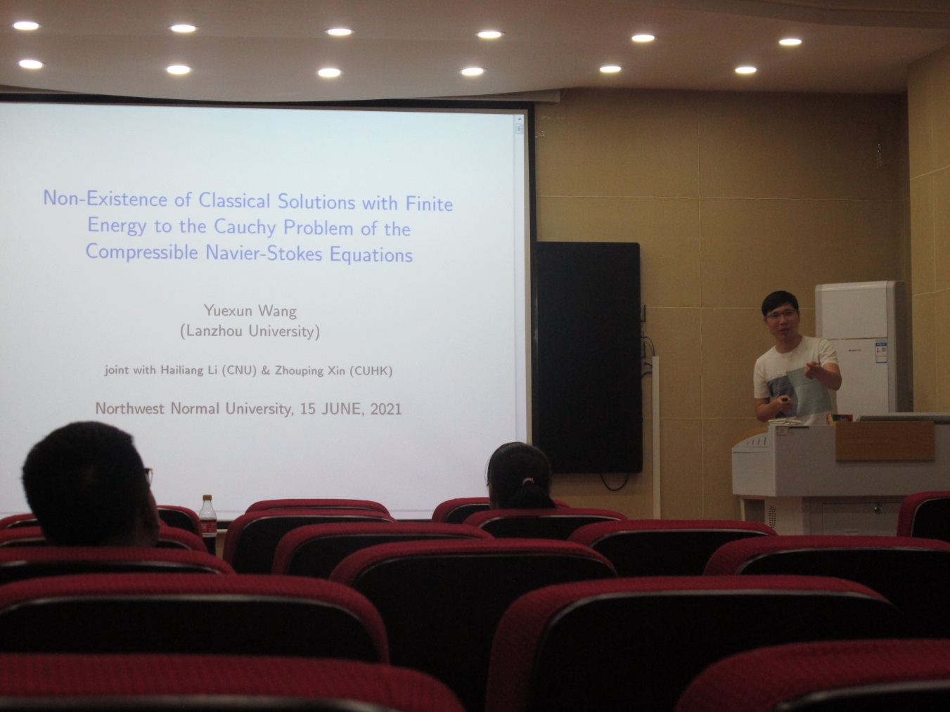 6月15日,应学院邀请,兰州大学王跃循教授来我院作了题为《Non-existence of classical solutions with finite energy to the Cauchy problem of the compressible Navier-Stokes equations》的学术报告。报告会由马巧珍教授主持,相关专业师生50余人参加了此次报告会。