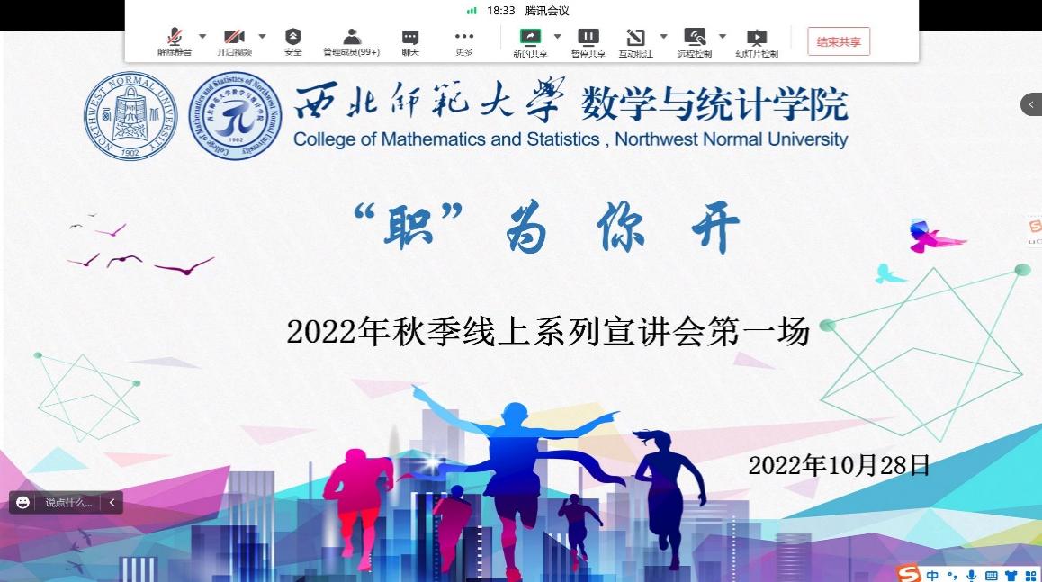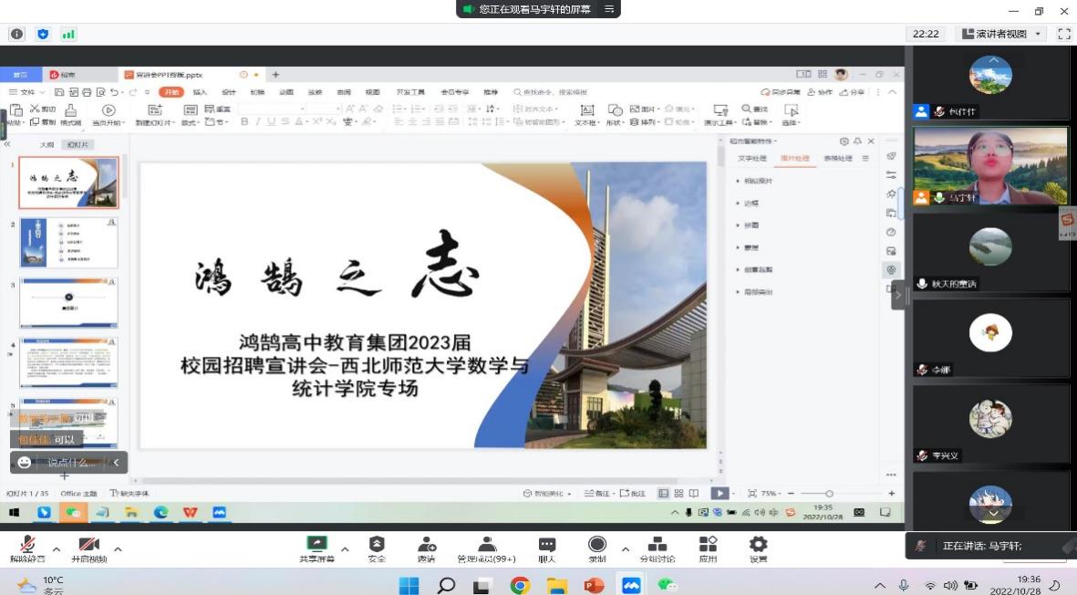 为切实做好毕业生就业工作,搭建毕业生与用人单位相互交流、双向选择的平台,为2023届毕业生提供更多的求职就业机会,2022年10月28日晚上19:30,我院举办线上四川鸿鹄高中专场招聘宣讲会。学院辅导员、毕业班班主任和2023届本硕毕业生共160余人参加。