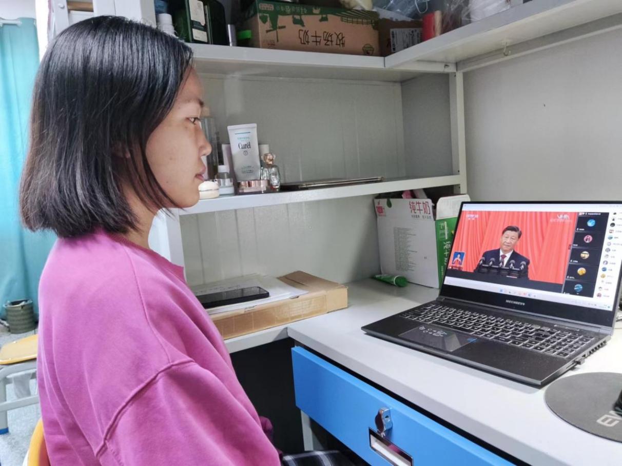 2020级数学与应用数学5班(公费师范生班)肖涵说:“听完习近平总书记在大会上所作的报告,鼓舞人心、催人奋进。作为一名预备党员、一名公费师范生,面对新形势、新任务、新挑战,必须进一步树立新气象。在今后学习中我将更加刻苦努力,学好专业知识,提高从师从业技能。为今后从事教育事业打下坚实基础,将基础教育这看似平凡的工作岗位,作为自己的人生舞台和一切追求的平台,树立长期从教、终身从教的职业情怀,为家乡教育事业贡献自己的力量。”