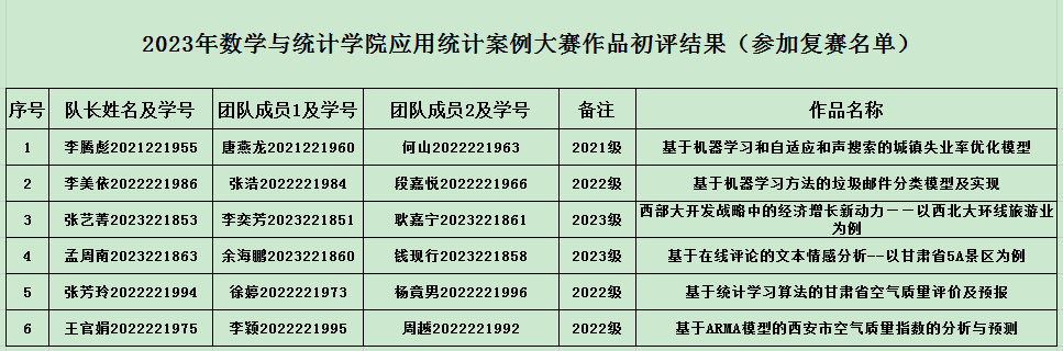 我院应用统计专业37名硕士研究生组成了13支队伍参加了本次应用统计案例大赛。由肖鸿民教授、冯慧芳教授、冯德成副教授、杨宏副教授、温瑾副教授、乔军胜教授、田玉柱副教授、张建东老师组成了本次案例比赛组织委员会,负责大赛的评审工作。比赛分为初赛和复赛两个阶段。