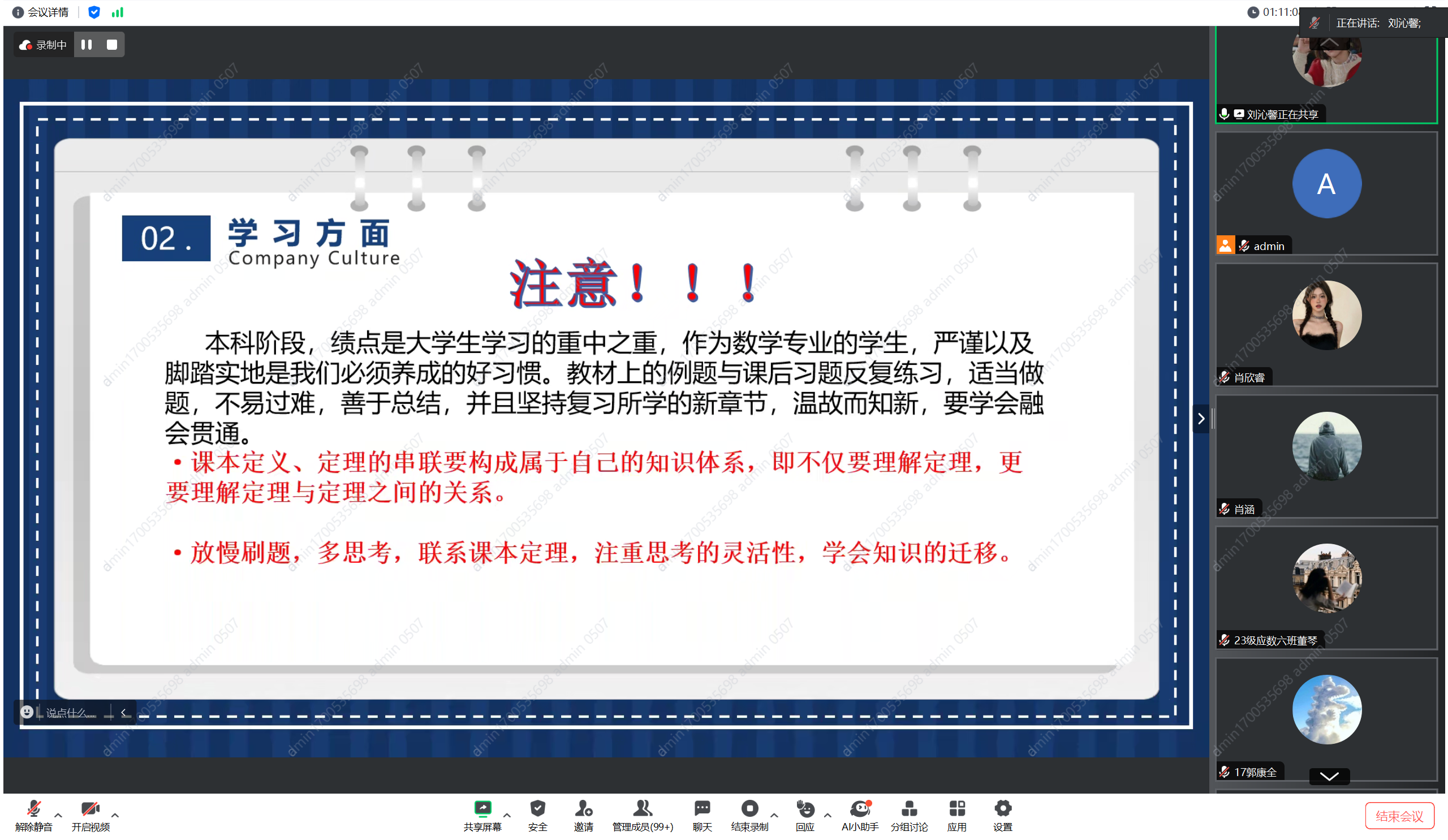 “他山之石,可以攻玉”。来自2021级信息与计算专业曾昭垒同学说:“受益匪浅。要定位清晰,脚踏实地,摆正心态。未来发展中,我们不仅要清楚自己想要什么,更要明白适合什么。无论选择升学还是求职,都需要在大学期间扎扎实实地学习专业知识,参加含金量高的比赛。不论是选择哪条道路,都会面临许多困难。升级打怪,当我们战胜困难之后就会有新的收获。”来自2022级信息与计算科学专业的王子硕同学说:“本次分享会真是振奋人心。我明白了成功往往源于对细节的极致追求和不懈的努力,我们要始终保持对知识的敬畏和热忱。我将会把这次分享会的收获内化为动力,不断探索、努力成长,成为一个对社会有贡献的人。”来自2023级统计学专业的李霆怡同学说:“很有幸能听到学长学姐的分享,我了解到了很多学习的方法。我们要正确定位自我,做好学业及职业规划,保持积极的心态,不断突破自我,提升自我。”