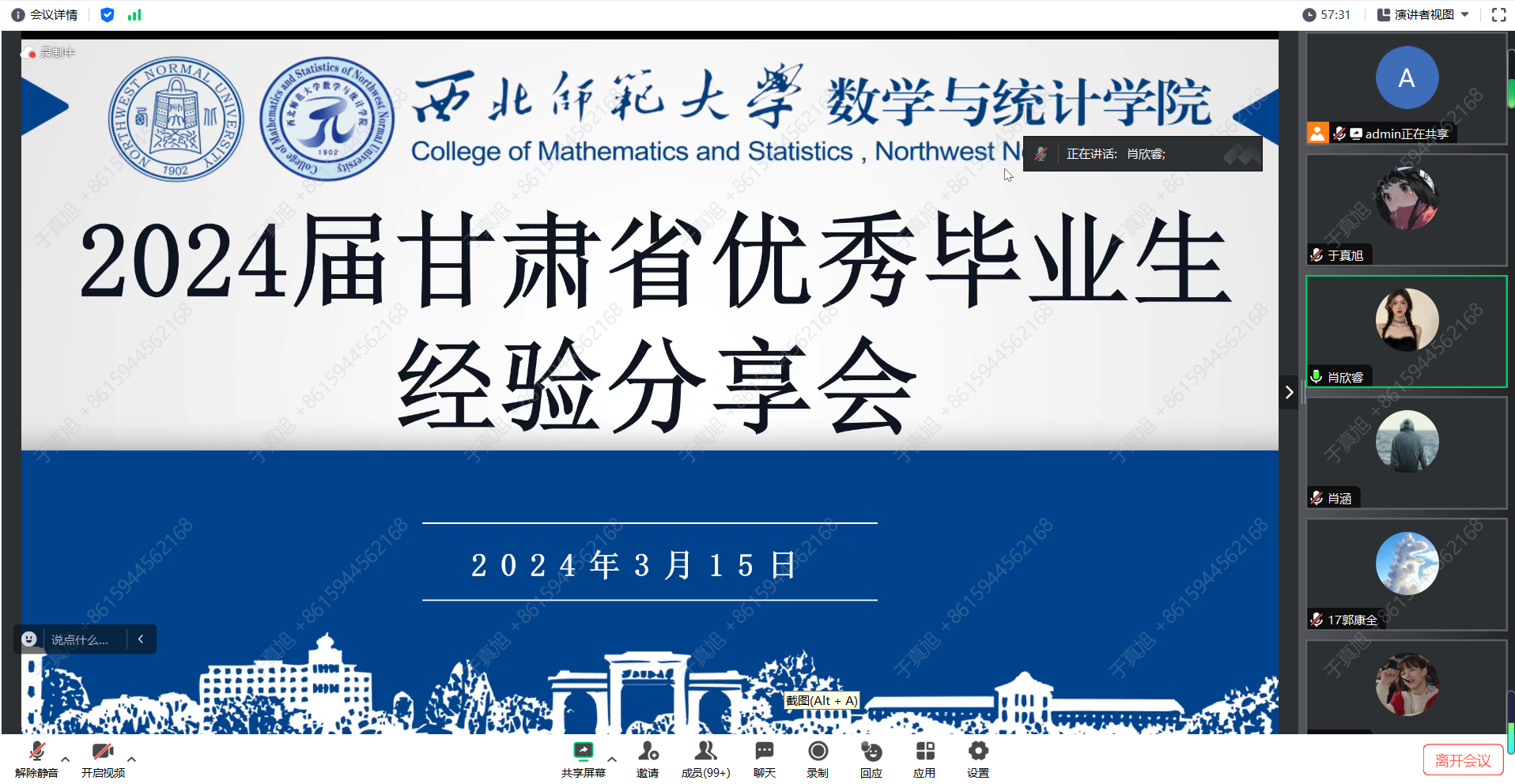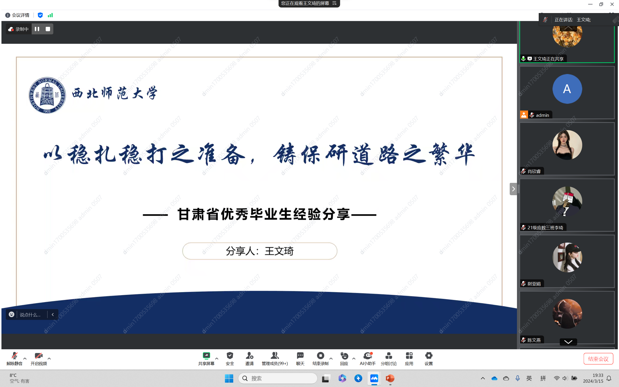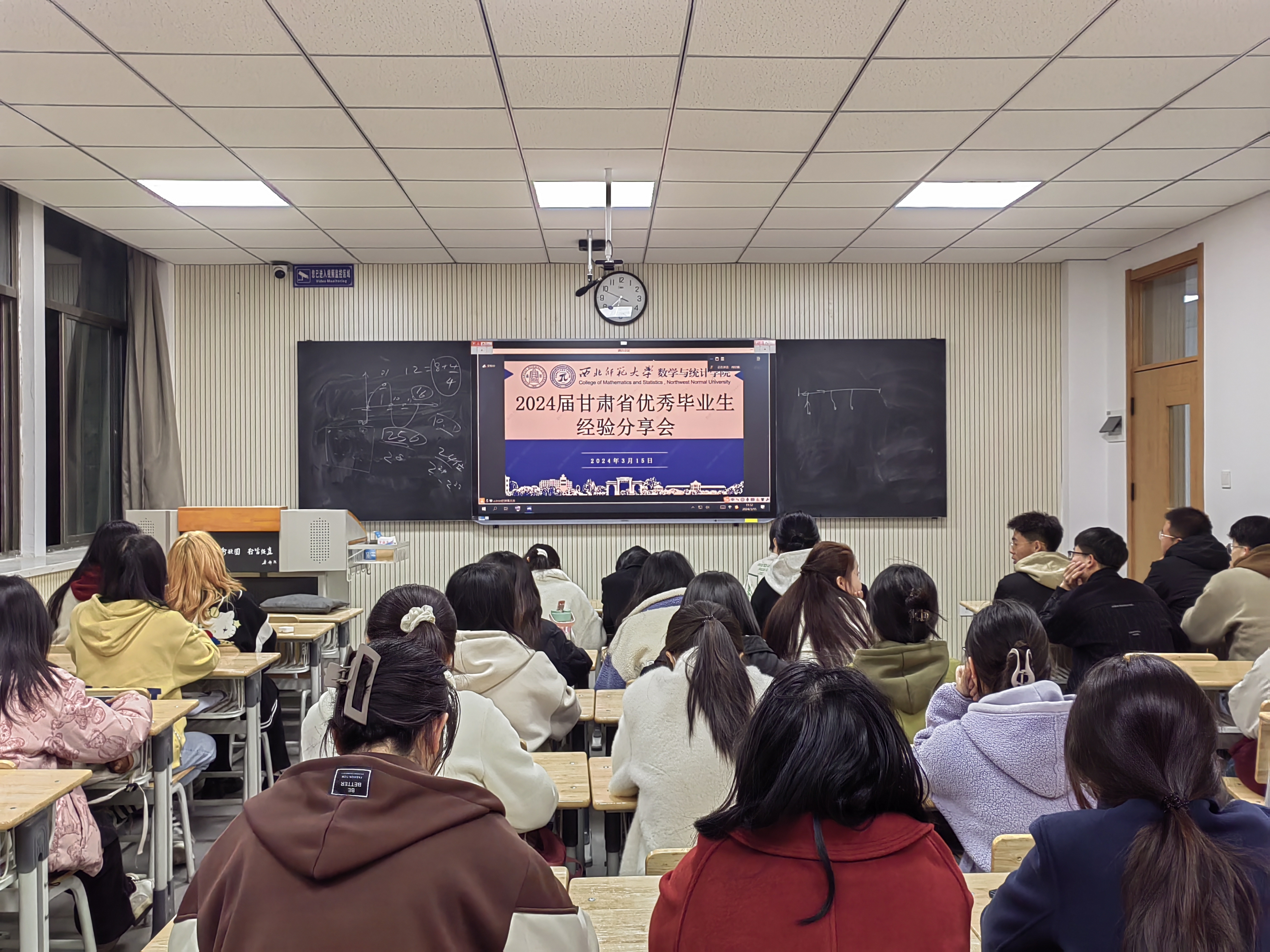 为充分发挥优秀毕业生榜样引领作用,学院于3月15日晚,通过线上线下相结合,举办了2024届甘肃省优秀毕业生经验分享会,会议由专职辅导员包佳佳主持,不同年级共计300余人参加。