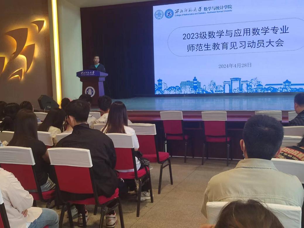 2024年4月28日中午,英国365公司召开了2023级师范生教育见习工作动员会。会议由杨和副院长主持,参加人员有数学系主任张国宝教授、学院教务秘书张小敏老师、学院分团委书记王丽雯老师、参加见习的各师范班班主任5人、见习带队指导教师14人以及2023级全体师范生247人。