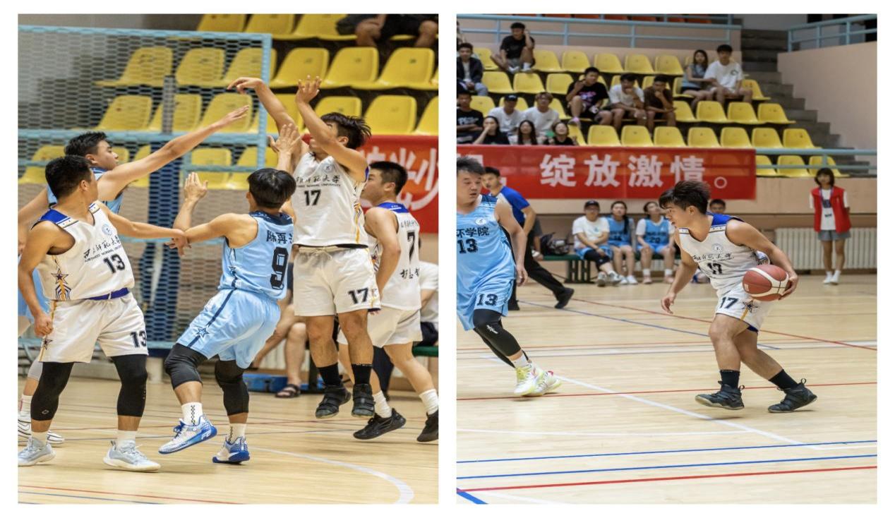 本科生非专业男子组决赛伊始,我方队员展现出了冷静与智慧,精诚合作,迅速进入状态。每一次精准的传球、果断的投篮、机智的防守都赢得了观众的阵阵掌声。“斗志昂扬,数统最强!”的助威声此起彼伏,铿锵有力,精彩的比赛赢得了观众们经久不息的掌声。最后,我院队员稳住阵脚,凭借一记精准的三分球锁定胜局,以72:56的比分赢得比赛。