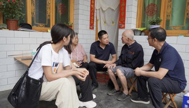 实践团走进甘谷县烈士陵园,怀着崇敬的心情向革命烈士敬献花篮与鲜花,表达对革命先烈的深切缅怀和无限敬仰;在甘谷县退役军人事务局工作人员的陪同下,实践团走进抗美援朝退役老军人家中,向他们送去了慰问品和祝福,以此表达对他们的崇高敬意。如今,这些老人虽年事已高,但精神矍铄,依然保持着对党和国家的深厚感情。91 岁的抗美援朝老战士席俊明老人更是慷慨激昂地复述毛主席“下定决心,不怕牺牲,排除万难,去争取胜利!”的誓言,深情回望那段峥嵘岁月。
