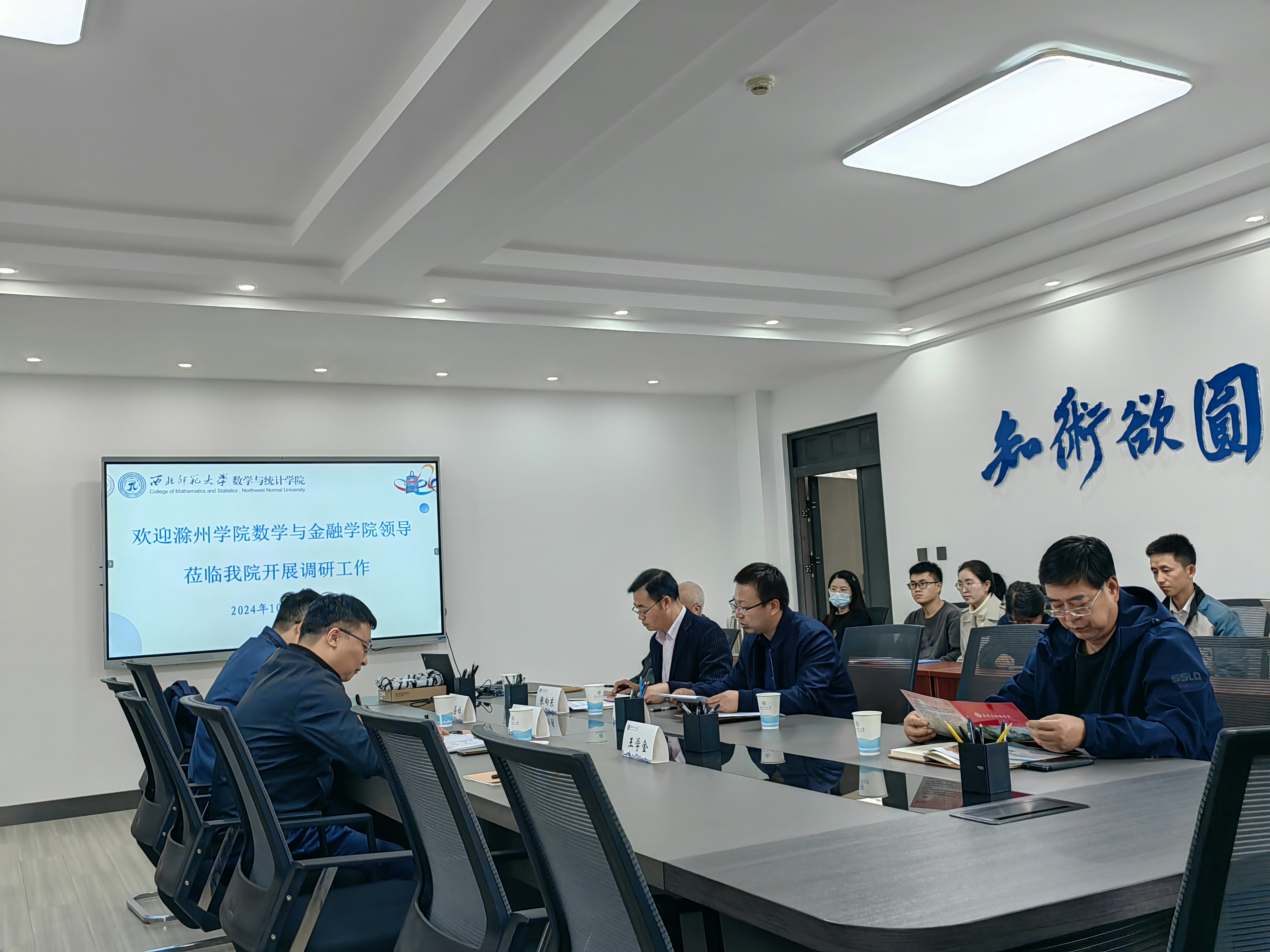 10月18日下午,我院邀请滁州学院在9B311会议室举行了人才引进宣讲会,滁州学院数学与金融学院党委副书记、副院长夏岩磊,副院长王圣祥老师,学院副院长陈鹏玉,副书记张向东、研究生班主任马成龙、辅导员王科以及毕业班博士生参加宣讲会。