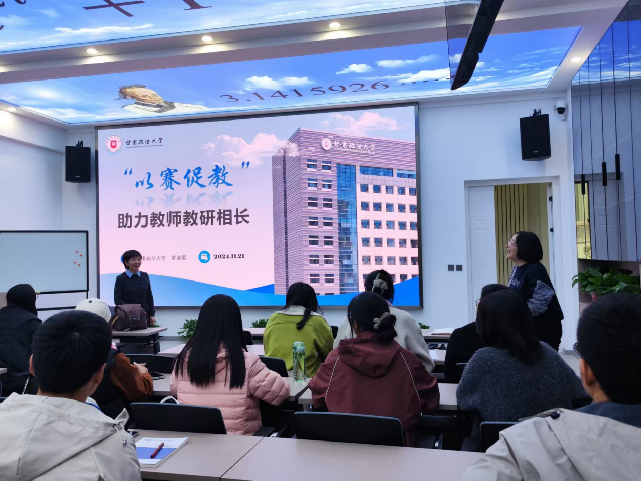 为了进一步提升青年教师教学水平,促进教学创新与交流,响应学院“教学文化节”系列活动的要求,我院于11月21日邀请甘肃政法大学常洁琨教授做了题为“以赛促教,助力教师教研相长”的教学报告。常洁琨教授在教学竞赛组织与教师专业发展方面有着丰富的经验与深入研究,她对于教学与科研相长方面的独到见解吸引了学院众多青年教师踊跃参与。
