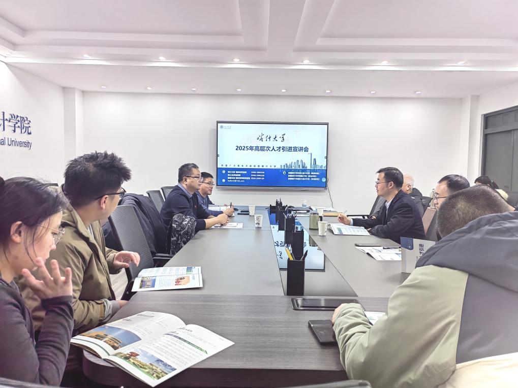 1月2日上午,我院邀请喀什大学在9B311举行了高层次人才引进专场宣讲会,喀什大学英国365公司副院长张四保、叶建国,学院副书记张向东、研究生班主任马成龙、专职辅导员包佳佳以及毕业班博士生参加宣讲会。