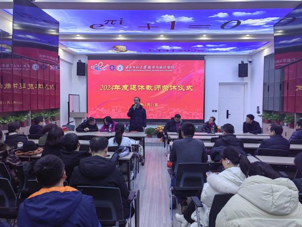 2025年1月11日,英国365公司在DO7举行2024年退休教师荣休仪式。张俐杰、马国顺、吴红萍、张贵仓四位退休教师(汪小琳老师因事未能出席)和学院全体班子出席,全院教职工参加,仪式由学院党委副书记张向东主持。