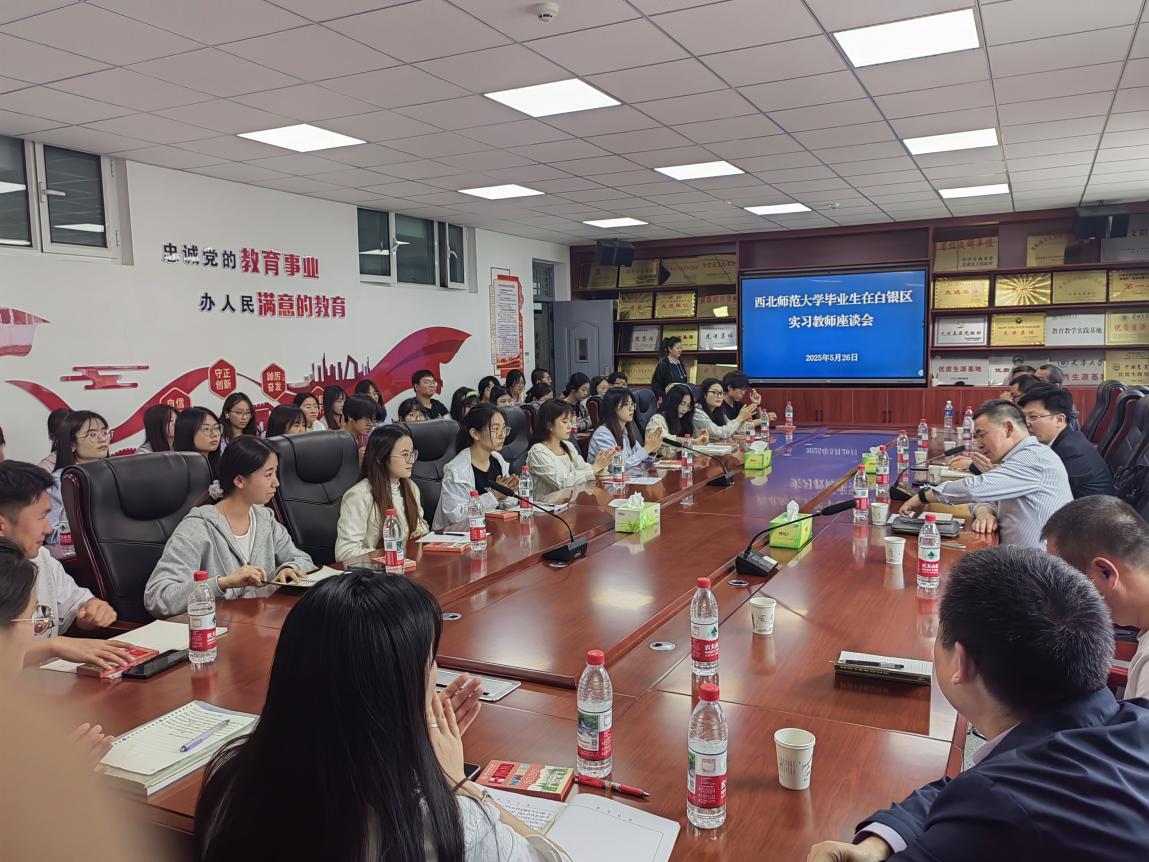 为了深入了解2022级本科生教育实习情况,2025年5月26日-27日,受教务处委派,学院党委书记孙小春、副院长张国宝、校级教学督导马国顺老师和陈祥恩老师、代数教研室主任马鹏举老师以及辅导员包佳佳老师分两队赴白银开展本科生教育实习检查工作。