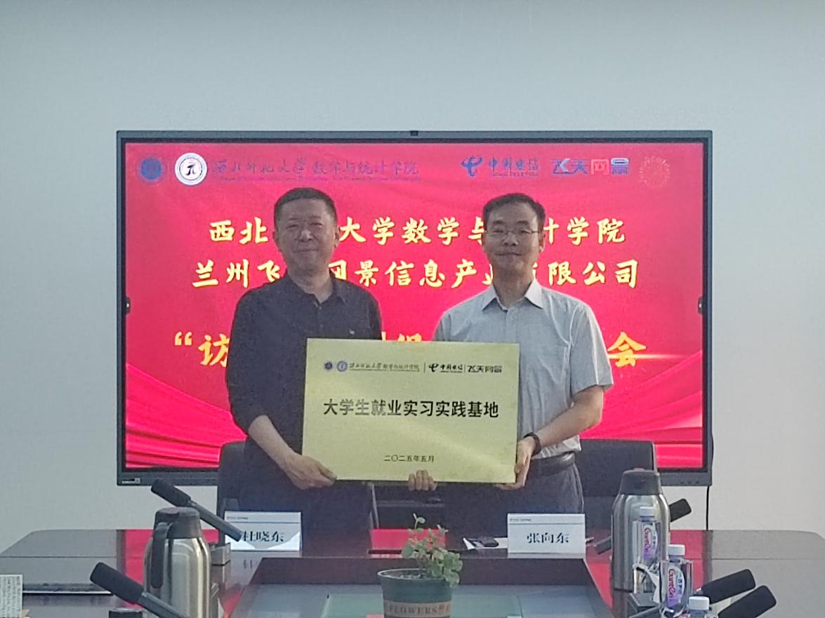 会上,学院与兰州飞天网景信息产业有限公司双方签署《毕业生就业实习实践基地建设合作协议》,学院授予飞天网景信息产业有限公司“大学生就业实习实践基地”牌匾。