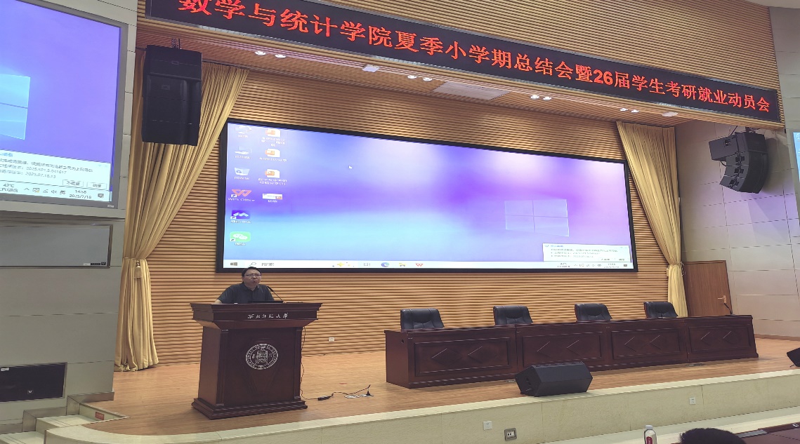 副院长张国宝对夏季小学期的各项活动做了回顾并做了全面的总结。他鼓励考研同学积极备考,付诸行动,并以《荀子·修身》中的“道阻且长,行则将至,行而不辍,未来可期”勉励全体同学。