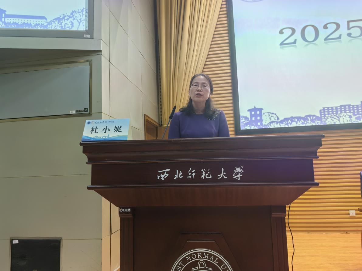 学院教师代表杜小妮老师向2025级新生分享了教学科研心得体会,并给新生提出三点建议和希望,一是要树立远大的理想和目标,二是要勤奋学习,勇于探索,三是要培养良好的品德和综合素质,希望同学们在求学路上努力学习,不负韶华,不负青春。