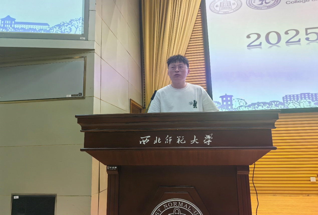 2025 级博士新生代表王东同学表达了自己对数学科研工作的向往,希望在博士阶段能够和各位同学一起培养自己主动拥抱“跨学科”的视野,保持“啃硬骨头”的韧劲,潜心研究、勇于创新,不辜负老师的培养,为学院学科发展贡献自己的一份力量。