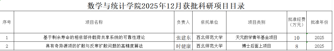 国家自然科学基金委员会于近日公布2025年度天元数学青年基金项目评审结果,我院张建东副教授获批1项天元数学青年基金项目。截至目前,我院2025年已累计获批国家自然科学基金项目12项,其中面上项目1项、青年科学基金项目6项、地区项目4项、天元数学青年基金项目1项。