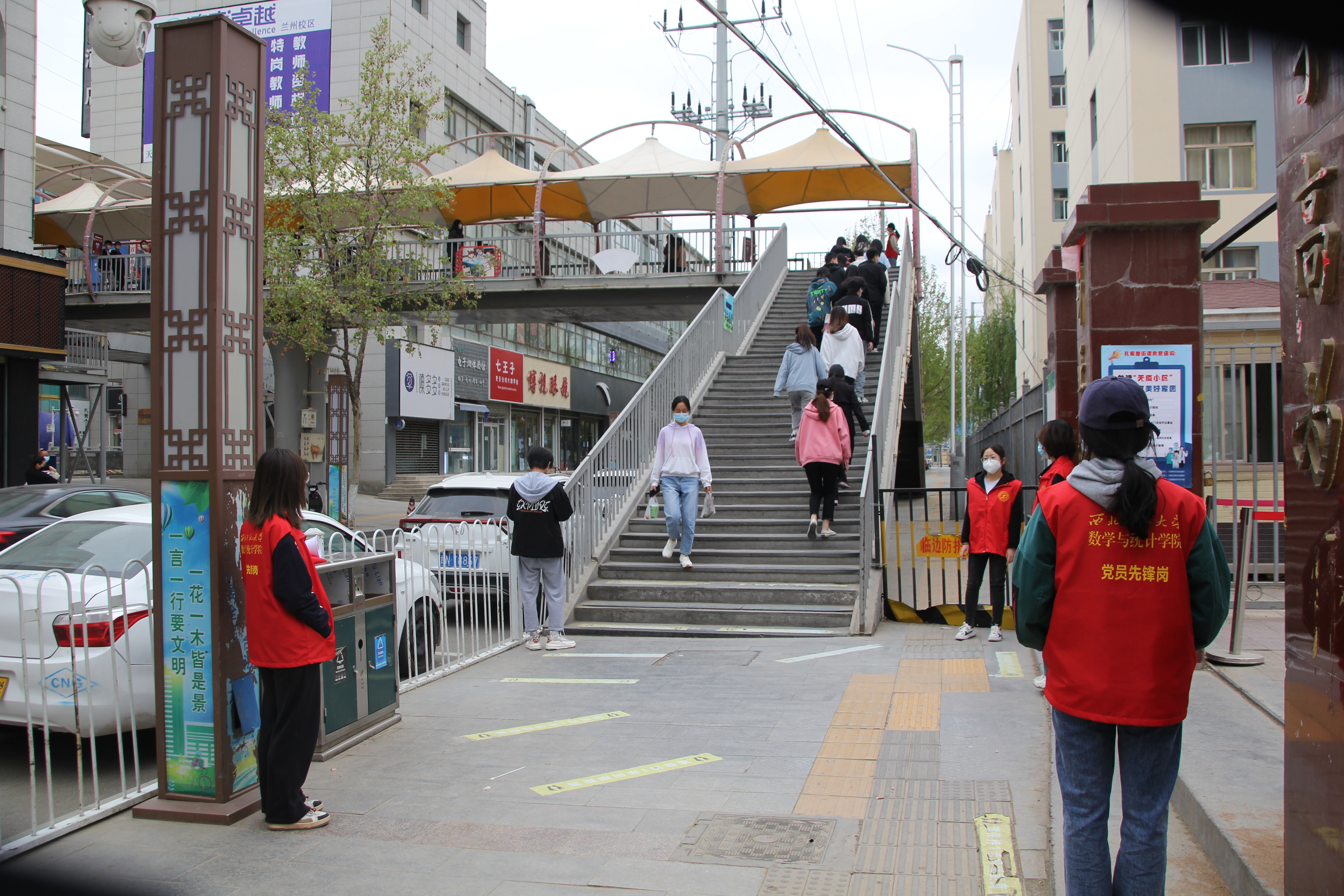 “先锋领航,共守防控第一线。”四月十五日下午两点,兰州市的气温骤降,但是我院党员同志的服务热情依旧高涨。他们按时到达自己的岗位,坚守在一线。“忘了自己,宽了心胸”是对他们由衷地赞美,从兰天公寓东门到学校西门,随眼可见许多穿着红马甲的党员同志,提醒同学们准备好健康码和通行卡,做到了不扎堆、不拥挤,井然有序,严格遵守疫情防控的要求,保证了同学们出行的秩序与安全。